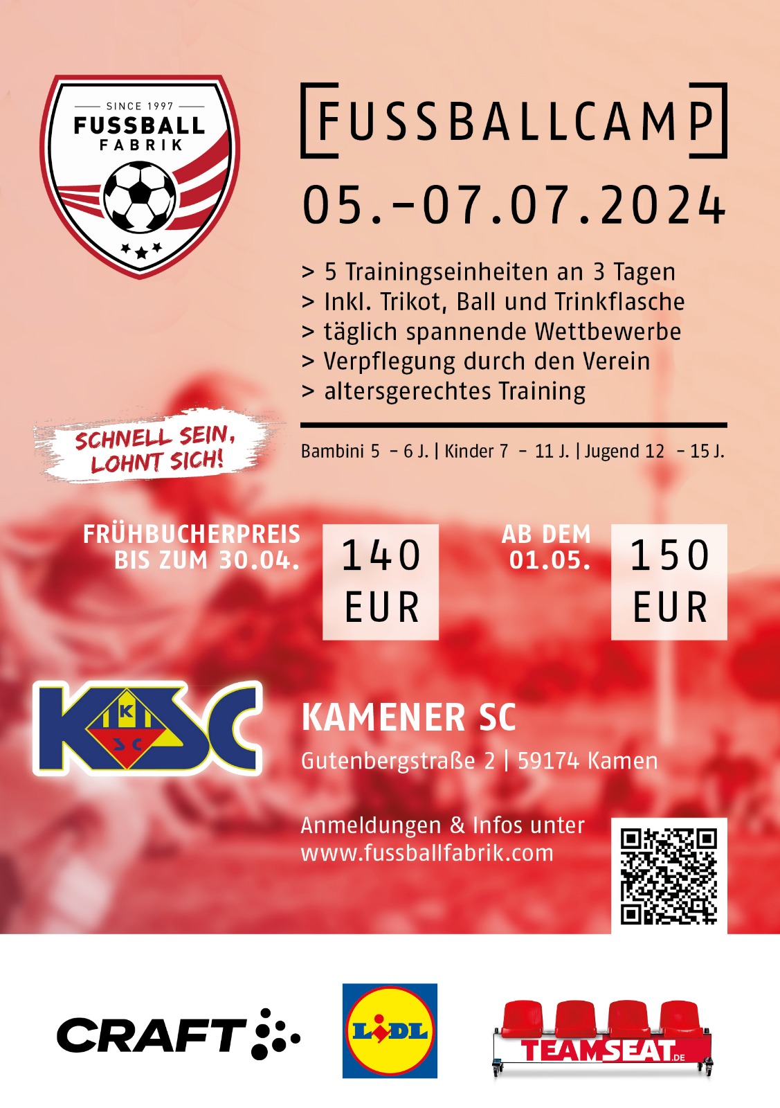 Herzlich willkommen bei den Fußballcamps des Kamener Sport Clubs! Wir bieten spannende und lehrreiche Camps für Kinder und Jugendliche an, bei denen der Spaß am Fußballspielen im Vordergrund steht. Unsere qualifizierten Trainer sorgen dafür, dass jeder Teilnehmer optimal gefördert wird – unabhängig von seiner Spielstärke.