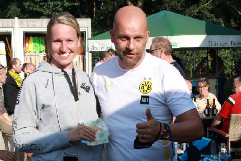 Das Ergebnis war eigentlich nebensächlich , denn nach dem Spiel saß man noch lange gemeinsam zusammen bei dem einen oder anderen kühlen Kaltgetränk. Der BvB ließ sogar noch eine Spende für die Jugendkasse da, die unsere Diana natürlich gerne entgegen nahm.